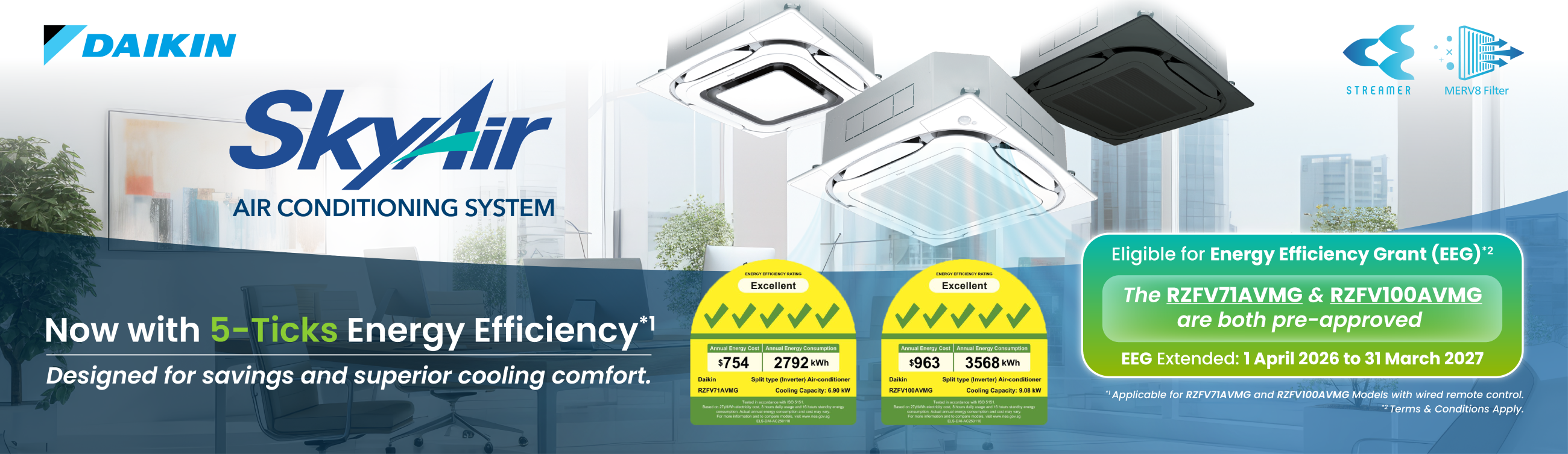Discover how you can lower operational costs and improve sustainability with Daikin’s pre-approved systems under the Energy Efficiency Grant (EEG), with up to 70% support for SMEs and up to 30% for non-SMEs.