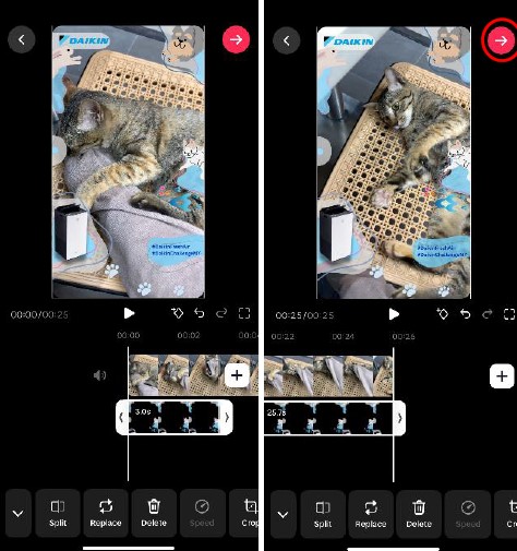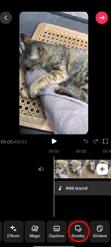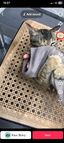 2. Upload your video into TikTok and click the icon button circle in Red.