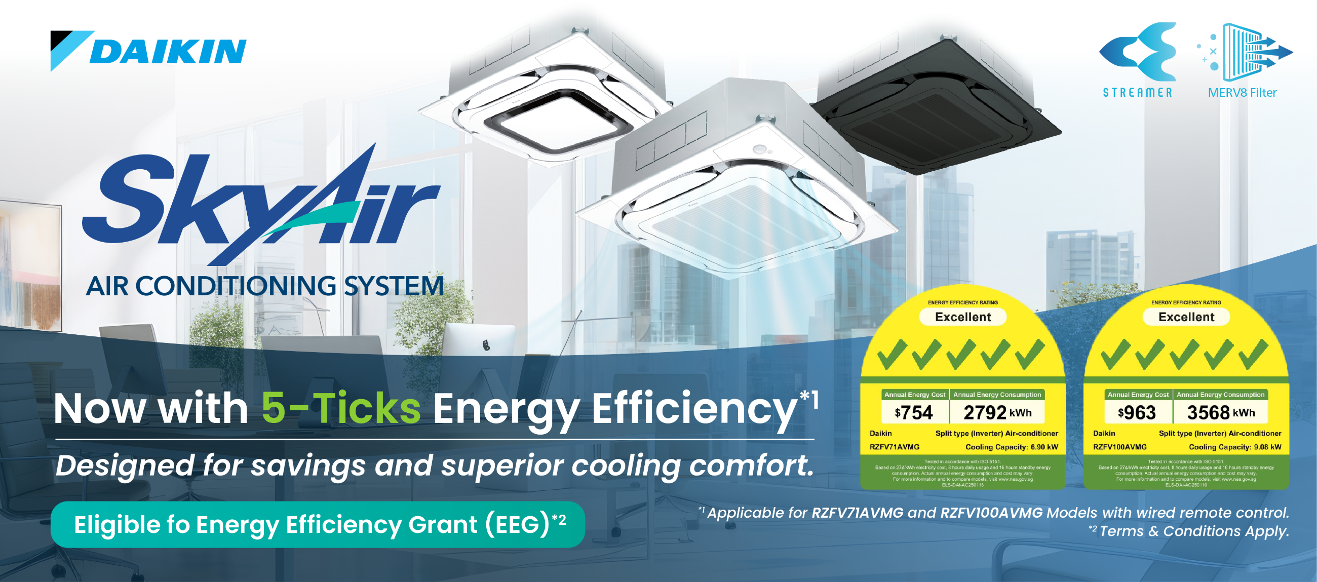Discover how you can lower operational costs and improve sustainability with Daikin’s pre-approved Residential Air , Skyair and VRV systems under the Energy Efficiency Grant (EEG).