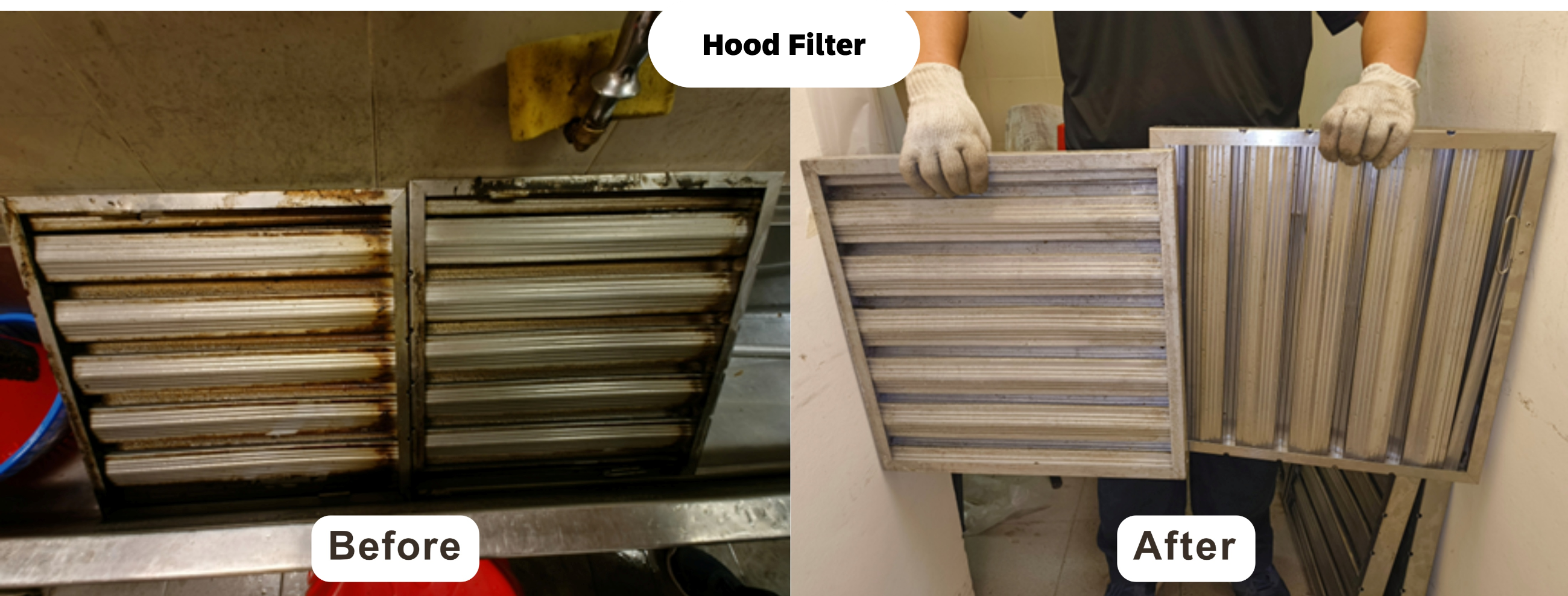 After a final wipe down has been done on the filters and hoods, the filters will be placed back inside the hood